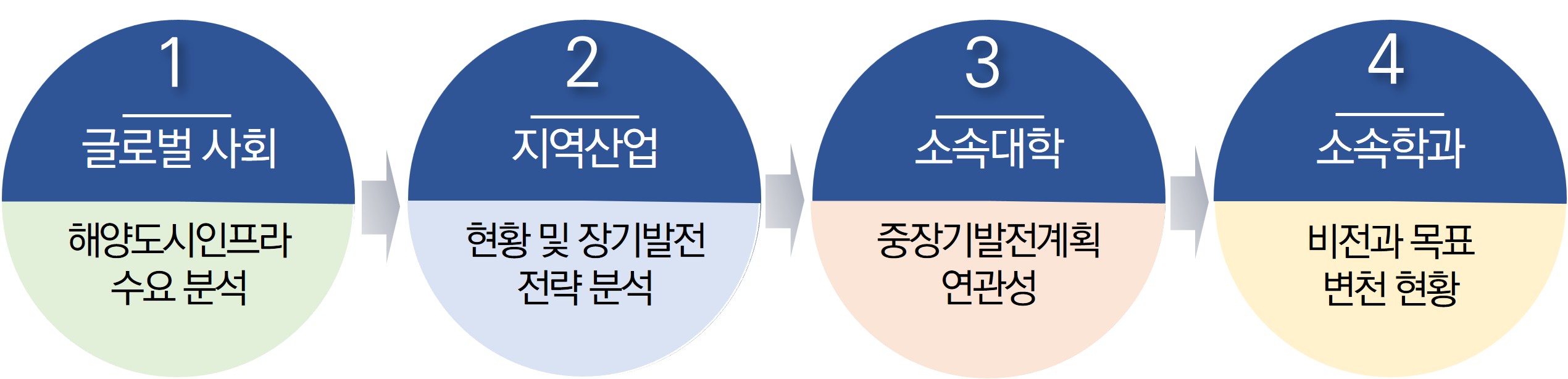 우리의 정체성은 해양환경 및 인프라 전반에 걸친 사회적 문제를 해결하는 실질적인 엔지니어링의 주체이며, 이를 위해 필요한 혁신적 지식사회를 창출하고, 창출된 지식을 지역과 글로벌 사회에 공유하고 확산하는 역량입니다.