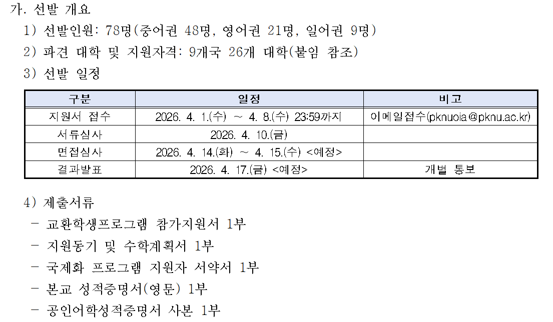 2026-2학기 파견 교환학생 3차 모집공고
